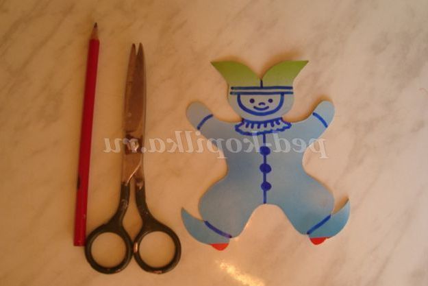 Крок 3. Розкладаємо деталі іграшки таким чином, щоб половинки іграшки були різних кольорів, як костюм Петрушки
