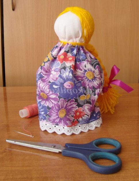Крок 20. Пов'язуємо хустинку на голову ляльки, закріплюємо. Лялька «Веснянка» готова.