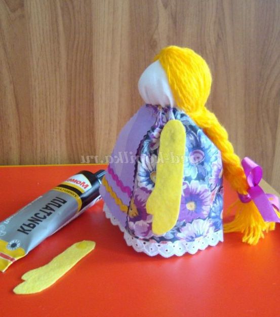 Крок 17. Приклеюємо ручки з боків ляльки.
