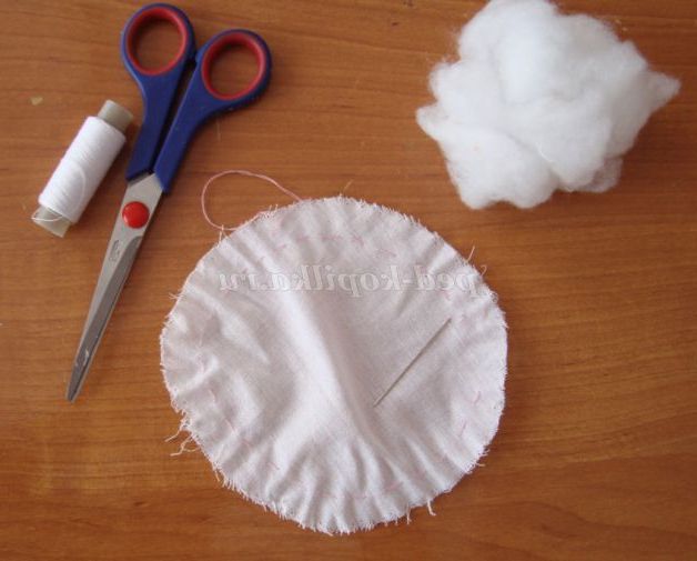 Крок 2. З х/б тканини білого кольору вирізаємо коло діаметром 12 див. - це буде голова ляльки.