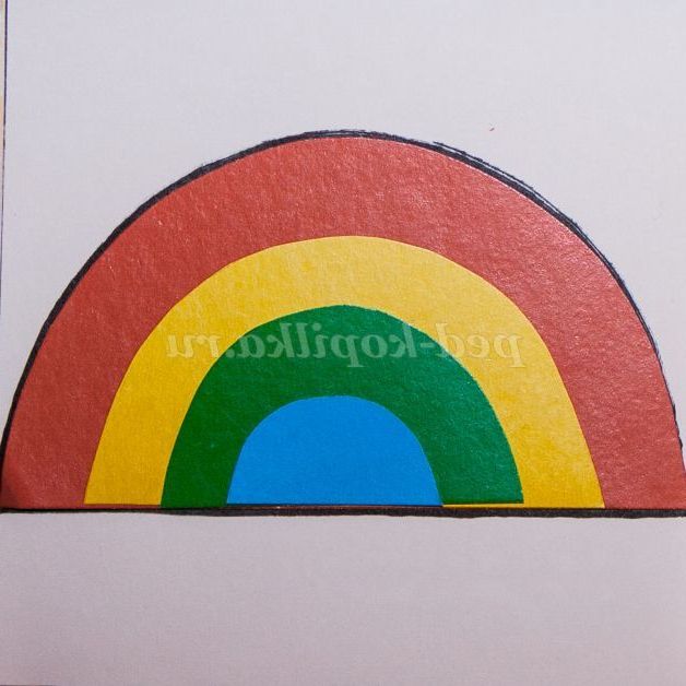 Вихователь: «А коли дощик закінчився, гномик побачив на небі барвисту веселку. Давайте зберемо нашу веселку і ще раз назвемо кольору».