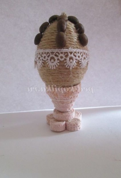 Отже. Почнемо з більш простого варіанту підставочки для яєць - з шпалер. Виконується вона в техніці "квілінг"