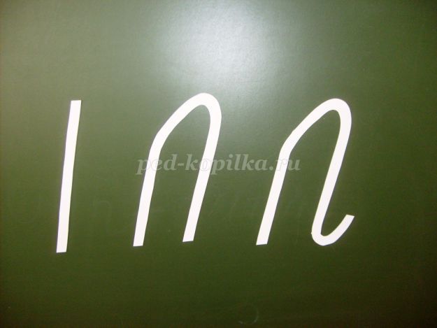 - Другий - знизу вгору з закругленням угорі і похила вниз.