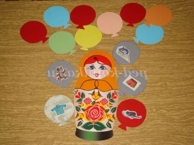 Хід гри: На парту викладається матрьошка, а навколо неї повітряні кульки кольоровий стороною вгору.