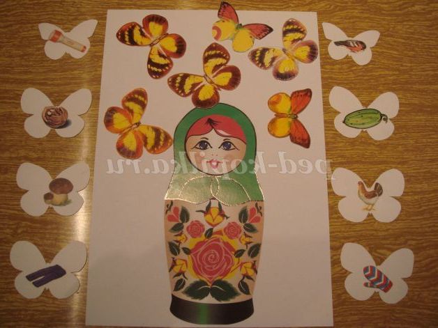 Обладнання: картинка матрьошки Рити, метелики, на звороті яких наклеєні різні картинки.