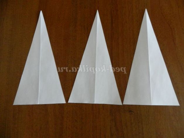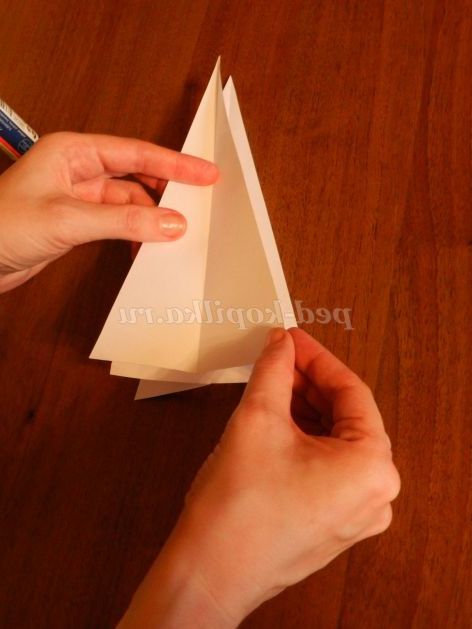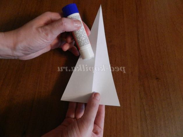 5.На половинку будь-якого трикутника наносимо клей і з'єднуємо два з трьох трикутників.