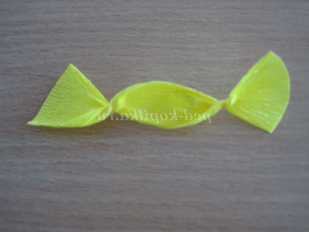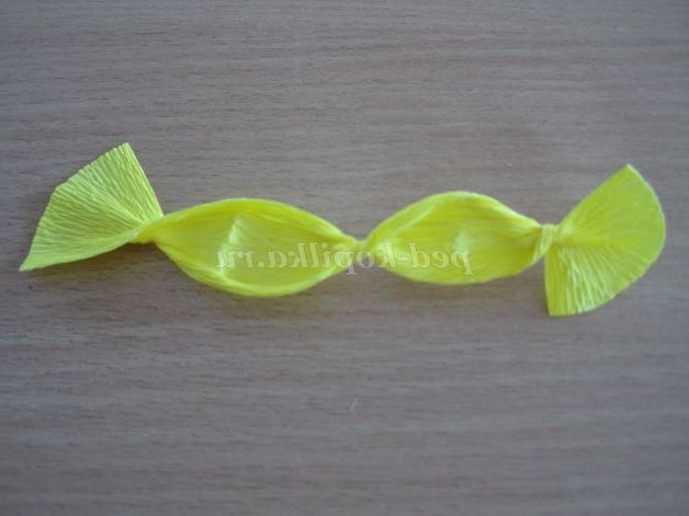 Бантики виготовте з креповой папери. Для цього наріжте її на невеликі шматочки і перекрутіть один раз.