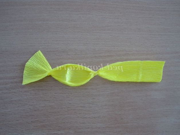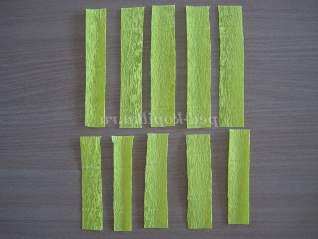 Креповую папір наріжте на смужки двох розмірів (довгі, короткі).