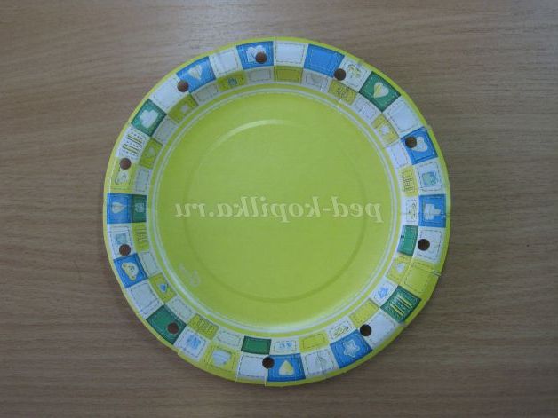 Діркопробивачем зробіть дірочки по краю паперової тарілки.