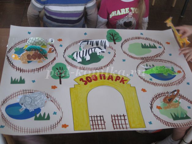 9. Тепер можна організувати гру. Наприклад, на аркуші ватману зобразити територію зоопарку з вольєрами, ставками і розмістити в ньому наших тварин.