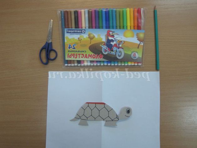 3. Прикладіть шаблон до складеного навпіл аркуш паперу, з'єднавши червону смугу на шаблоні зі згином листа.