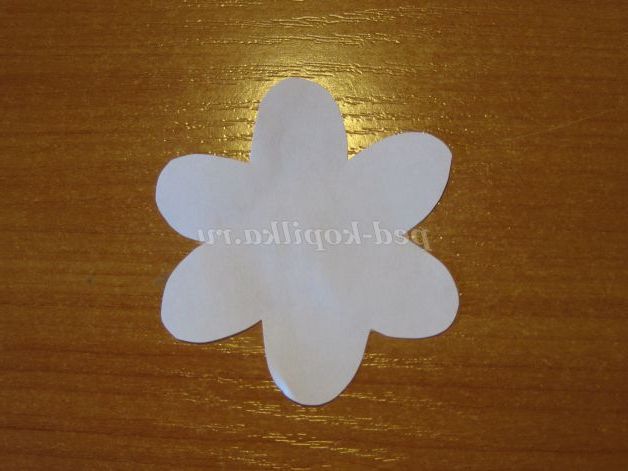 Тепер виготовимо різні квіти. За шаблоном обведіть і виріжте білий квітка і його серединку.