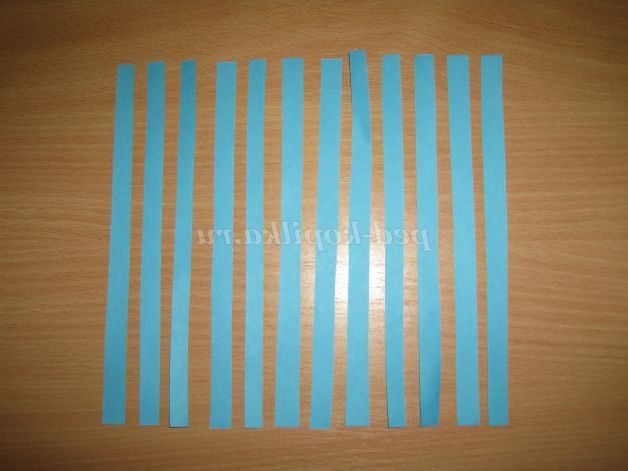 8. Квіти можна виготовити наступним чином. Візьміть половину аркуша кольоровий двосторонній папери і розріжте її на смужки шириною приблизно 1 див.