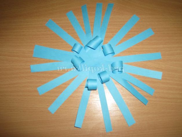 10. Закрутіть з допомогою ножиць кожен промінчик сніжинки.