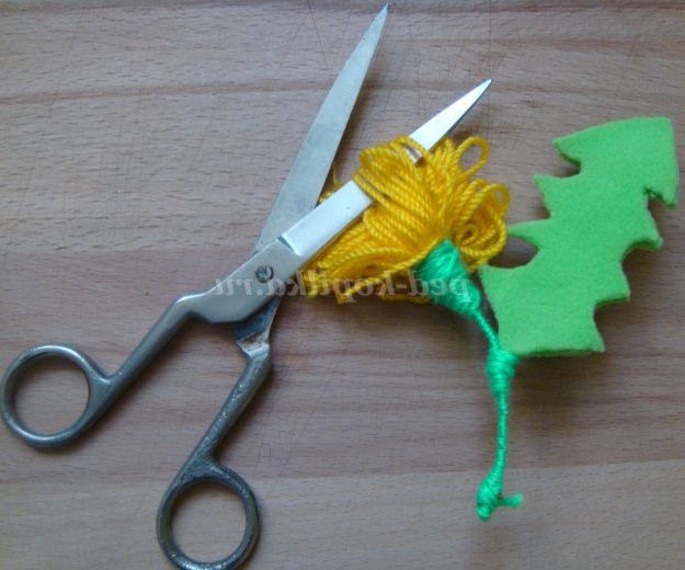 Після цього беремо ножиці і розрізаємо витки жовтої нитки на бутоні, надаємо круглу форму, зістригаючи нерівності (якщо вони є) і наші кульбаби готові!
