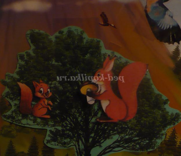 Вихователь: Молодці, Мілана, покажи нам у нашому лісі, як виглядає білка.