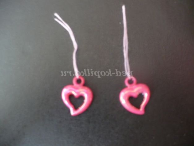 Робимо сережки: На нитку наділи намистину вигляді сердечка і зав'язали, теж зробили з другої намистиною, саму нитку приклеїли на скотч до яйцю, таким чином, щоб вона згодом зачинилися волоссям.