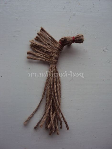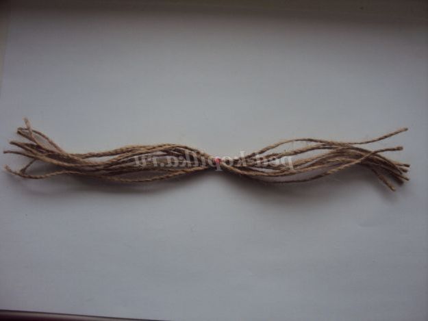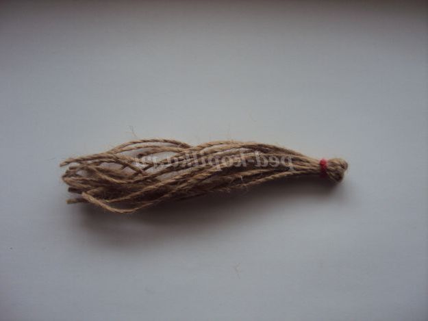 14. Беремо смужки джутового шпагату по 10 див. 8 штук, перев'язуємо з двох сторін і відрізаємо зайве - це передні копита.