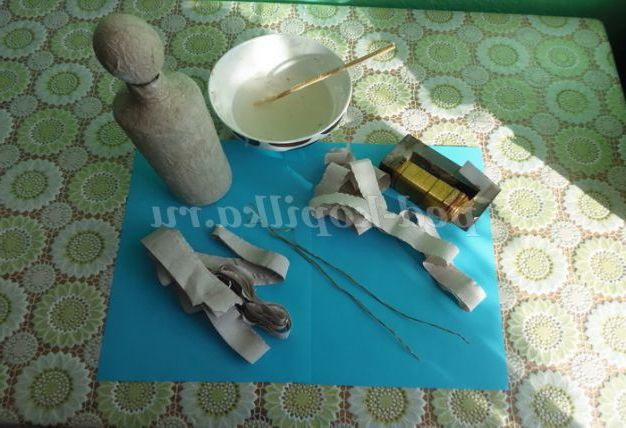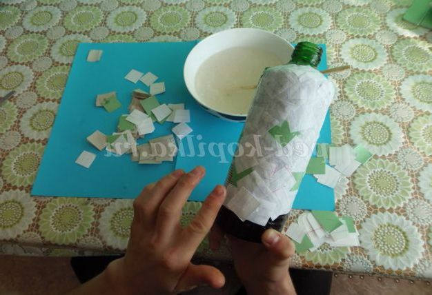 3. Пляшку обклеїти папером (10 шарів). Дати висохнути одну добу