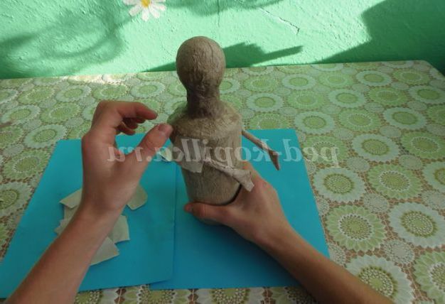 7. Намітити місце для рук і зафіксувати їх, як і голову (смужками туалетного паперу, змащуючи їх клеєм) дати висохнути 1 добу
