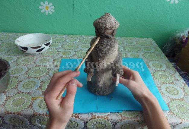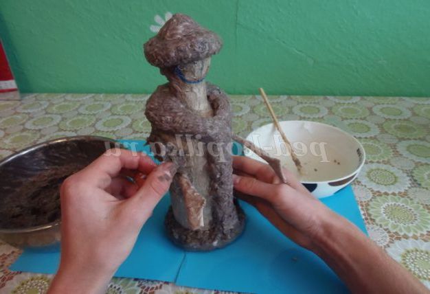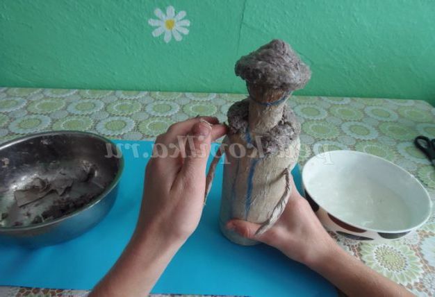 9. На висохлій заготівлі промальовувати, де будуть місця для узлісся шуби. Ці місця промазати клеєм і накласти масу, додаючи потрібну форму