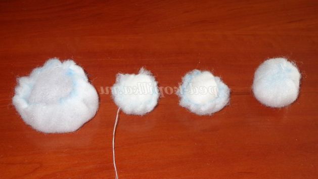 2. Зберемо кожен гурток на нитку швом через край і затягнемо нитка, попередньо набивши деталі ватою (фото 4 фото 5)