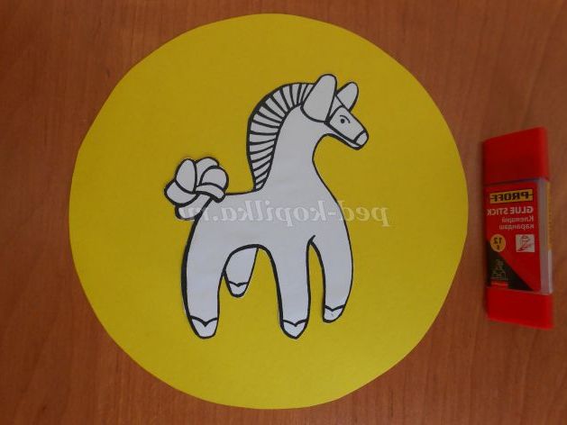 Першим справу потрібно приклеїти шаблон нашого коня на тарілочку