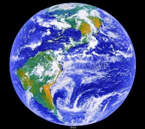 (на екрані з'являється планета Земля, вид з космосу). Подивіться - це наша планета. Юрій Гагарін, коли вперше побачив свою планету з космосу, назвав її «блакитною планетою». Чому вона здається такою блакитний?