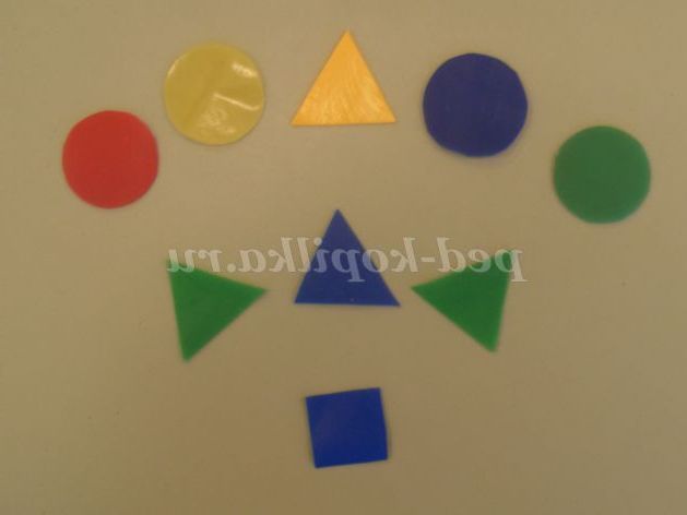 Вихователь пропонує дітям зробити, скажімо, гусінь, показати йому, які фігурки потрібно для цього взяти і як їх скласти. Залиште своє зображення перед дитиною в якості зразка, поки він буде збирати своє.