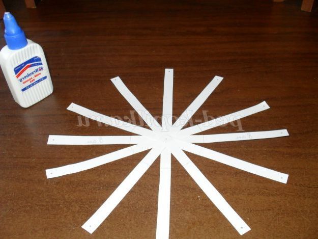 Наступні смужки приклеюємо під кутом 30 і 60 градусів, поєднуючи їх центри.