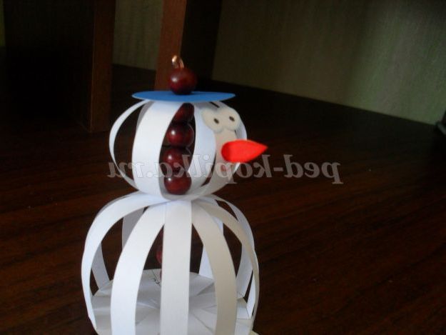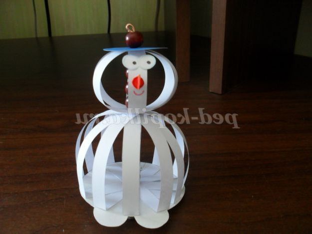 Також як і тулуб формуємо голову Сніговика. По черзі кінці смужок протягуємо через дріт.