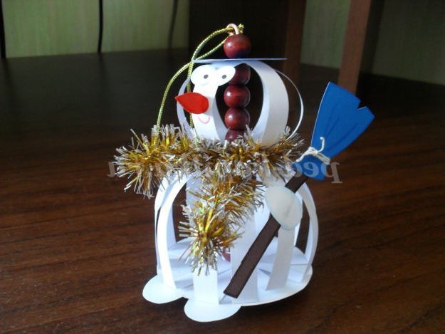 Представляємо майстер - клас з виготовлення новорічної іграшки - Сніговичка. Робота виконується під керівництвом дорослих, так як використовуються складні для дітей інструменти - шило, кусачки.