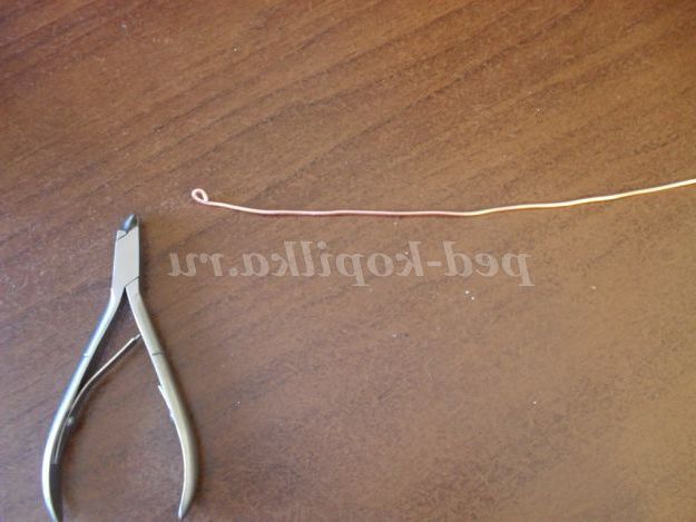 Далі нам потрібно зробити стрижень, на якому буде триматися наш Сніговик. Беремо дріт і за допомогою кусачок загинаємо один кінець у вигляді петельки.