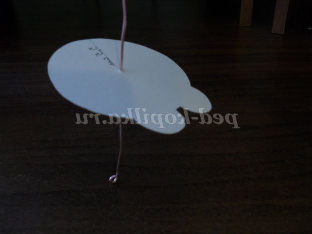 На деталі з картону, яка буде подставочкой, робимо шилом або товстою голкою отвір, в яку протягуємо дріт так, щоб петелька опинилася знизу.