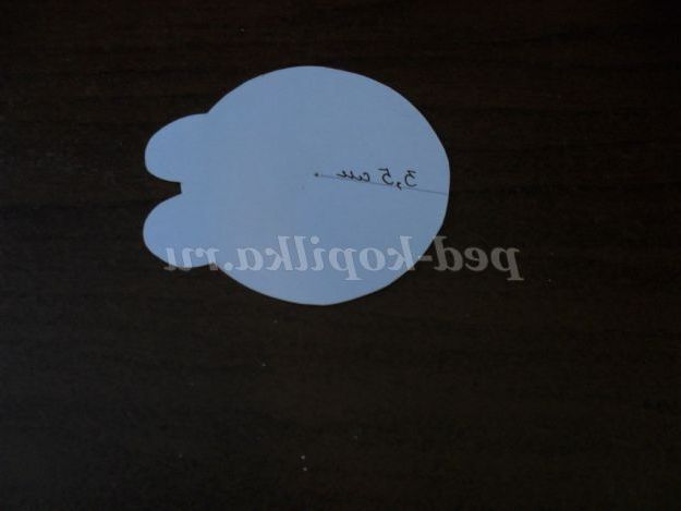 З кольорового паперу (картону) вирізаємо коло радіусом 2 див. В центрі відразу робимо отвір. Це буде шапочка.
