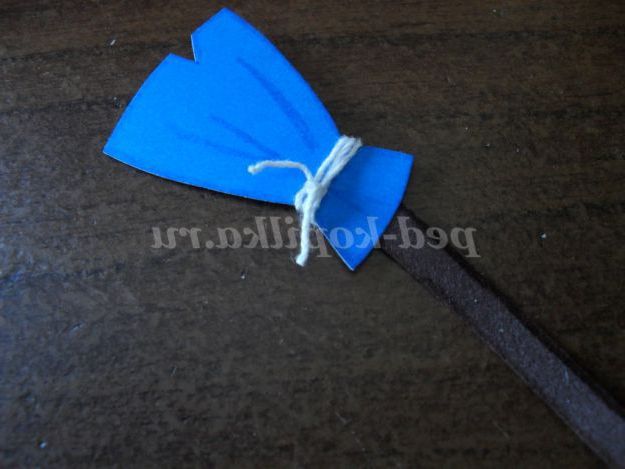 Склеюємо деталі мітли. Олівцем або фломастером подрисовываем гілочки на самій волоті. Обмотуємо мітелку х/б нитками.