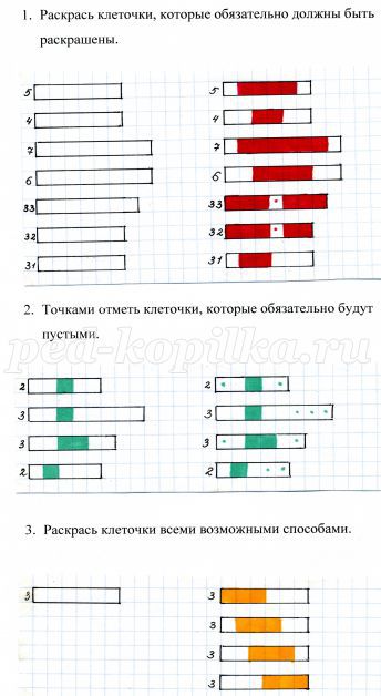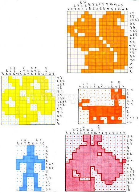 I етап. Найпростіші килимки та орнаменти, при розмальовуванні яких учні ознайомлюються з умовними позначеннями, правилами розгадування кросвордів. Перші завдання виконуються колективно, разом з учителем.