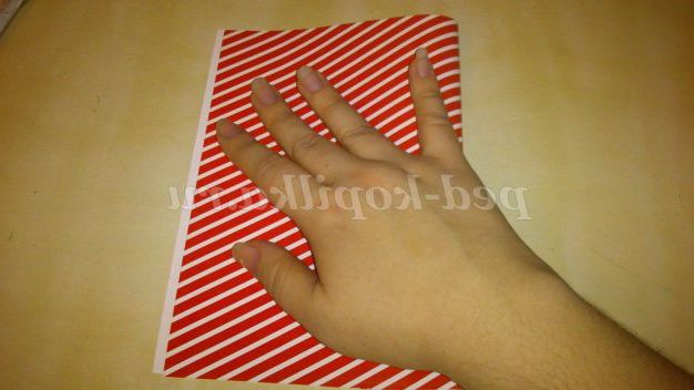 5.далі ми беремо аркуш паперу декоративної і складаємо його навпіл ( за бажанням можна використовувати кольоровий картон), він і послужить основою для нашої листівки
