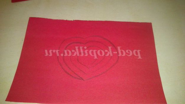 7.Приклеиваем на лист наше серце не далеко від лінії згину