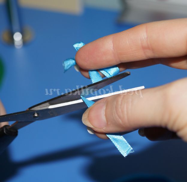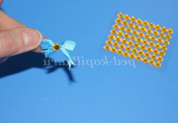 З атласних стрічок робимо бантики і прикрашаємо по середині стразами