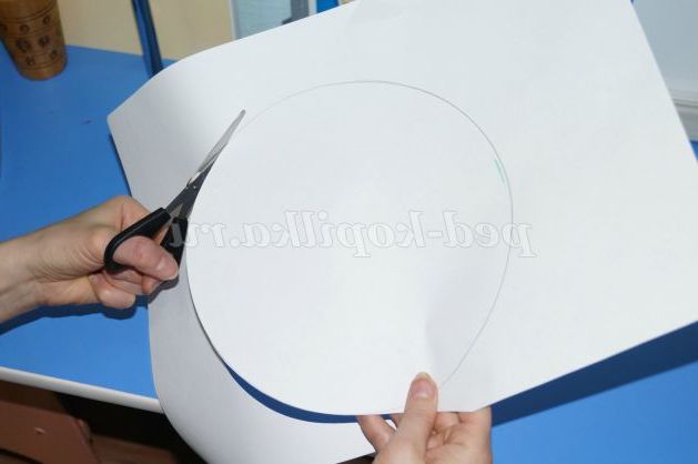 На білому аркуші паперу креслимо і вирізаємо коло (розмір залежить від того, якою висотою ви хочете свою ялинку)