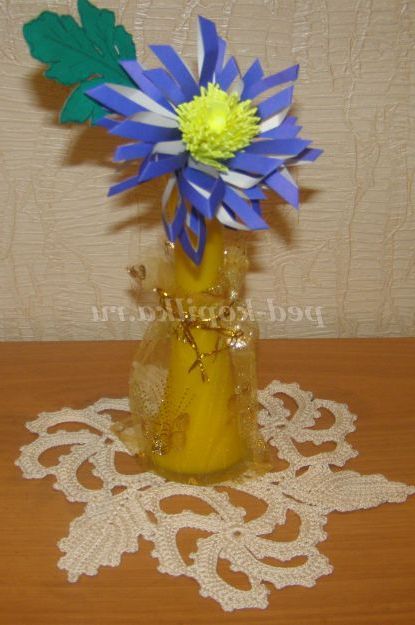 Призначення: квіти даного майстер-класу підійдуть для оформлення святкового інтер'єру в дошкільному закладі або вдома. Такими букетами ми прикрашали столики на ранок 8 березня, який проводився у формі весняного кафе.