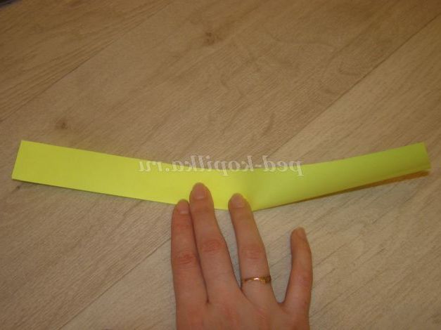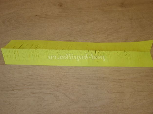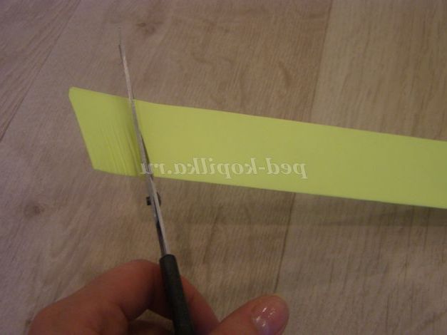 Для серединки беремо двосторонню жовту папір. Відміряємо смужку 6 см і відрізаємо.