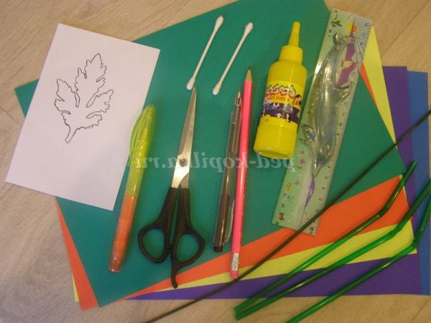 Дротом протикаємо трубочку, вставляємо листочок в стеблинка