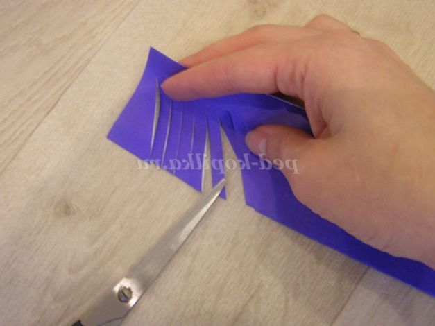 Нарізаємо смужки під кутом(за таким же принципом як і для серединки) тільки шириною 0,5 - 0,8 см (ширше ніж у серединки квітки)