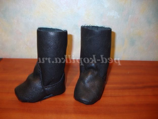 Чоботи викроїти з чорної шкіри і зшити машинним швом.