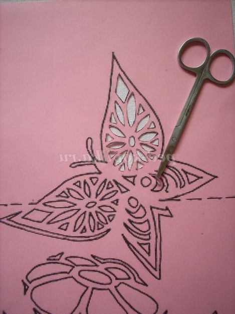 3.Маникюрными ножицями вирізаємо більш дрібні елементи на крилах метелика.