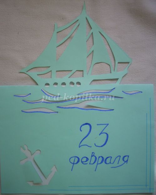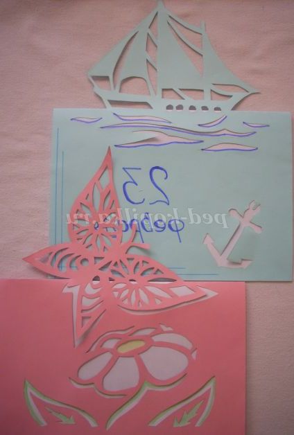 За цією ж схемою виготовляємо листівку і до 23 лютого.