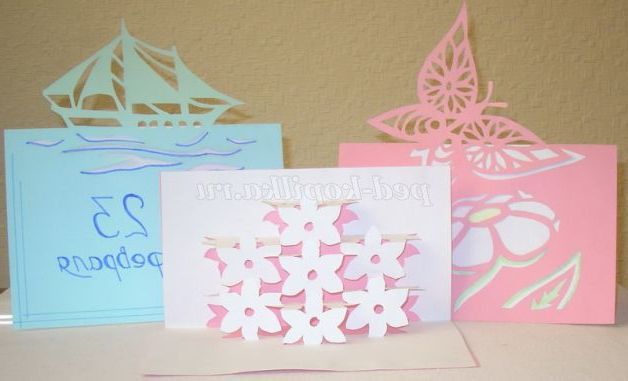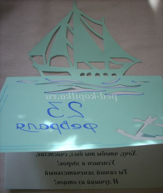 Не тільки мами на 8 березня, але й тата на 23 лютого чекають свята, уваги сім'ї, смачного столу і, звичайно, подарунок, але щоб обов'язково від усієї душі. Який би подарунок, великий або просто символічний, ви не вибрали, привітання можна внести родзинку, виготовивши такі вітальні листівки.