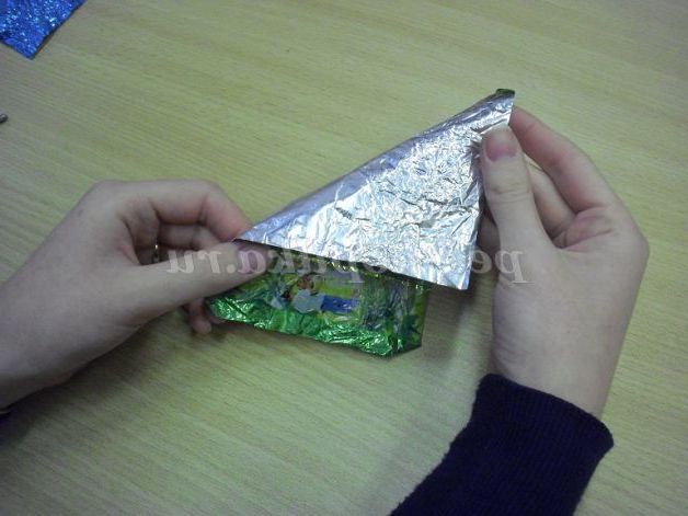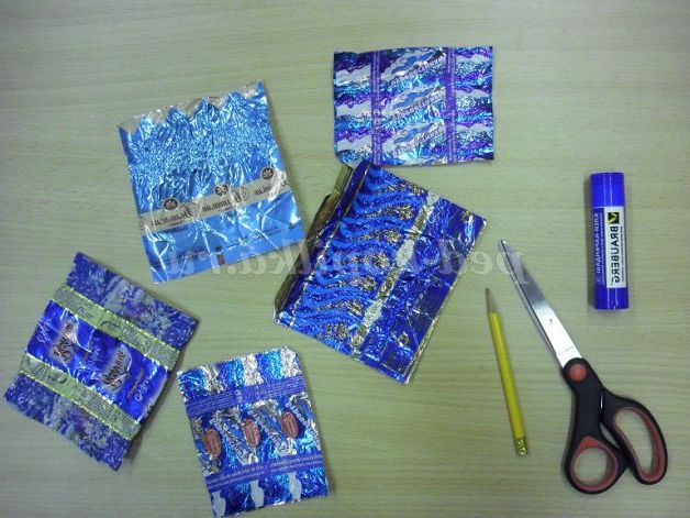 Замети вирізаємо з будь-яких фантиків з блискучою зворотною стороною.